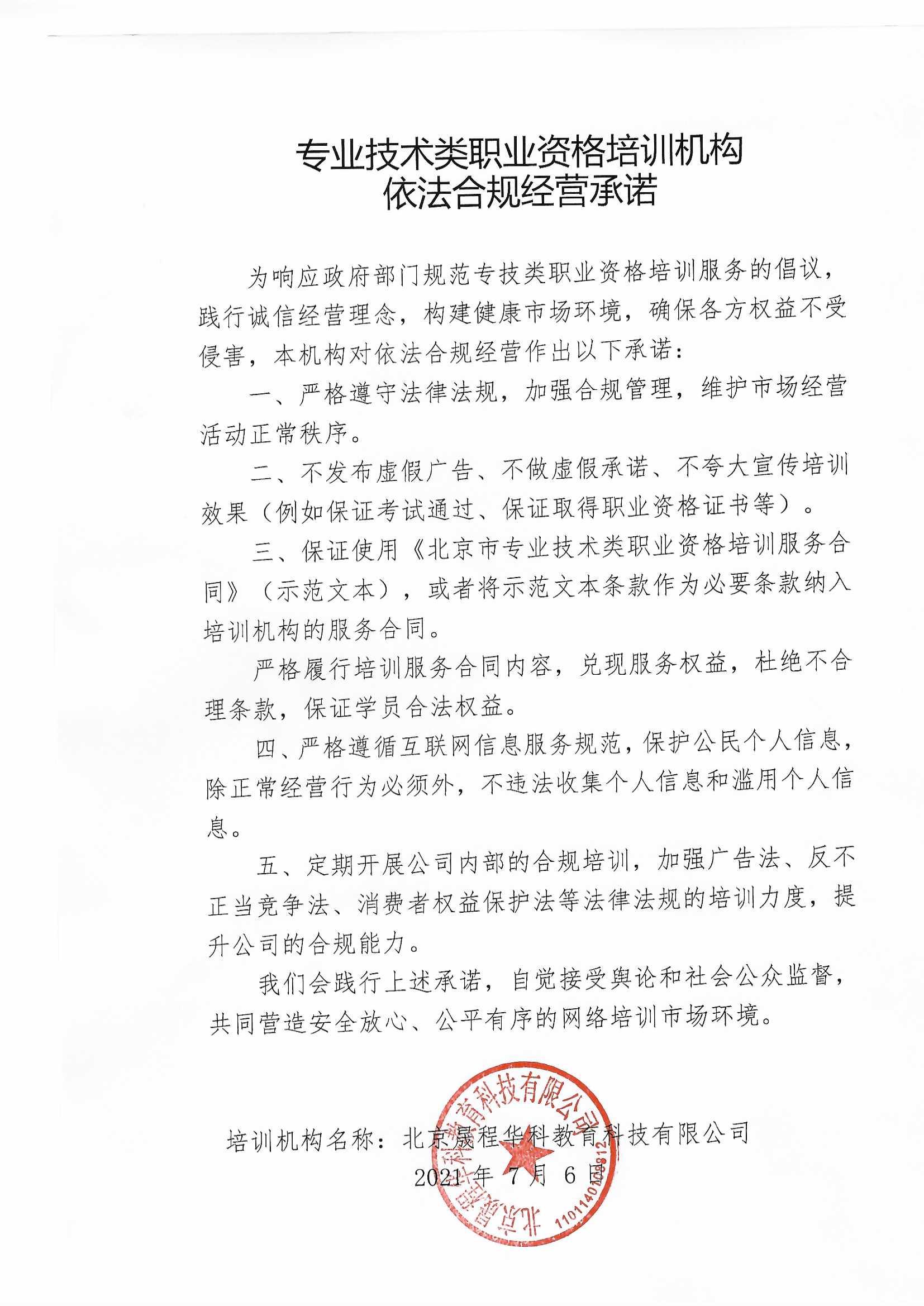为响应政府部门规范专技类职业资格培训服务的倡议,践行诚信经营理念,构建健康市场环境,确保各方权益不受侵害,北京晟程华科教育科技有限公司就举办的尚硅谷培训项目做出依法合规经营承诺。http://www.cprc.com.cn/cprc/xxdt/tzgg71/599565/index.html